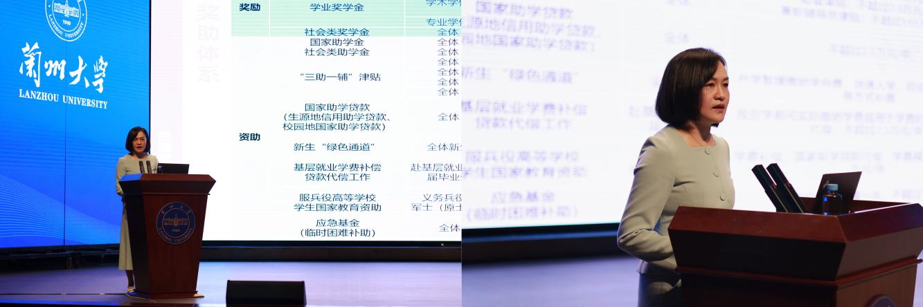 研工部副部长许倩就《兰州大学研究生奖助体系》进行了详细解读。她系统介绍了国家奖学金、学业奖学金、社会类奖助学金、国家助学金、“三助一辅”津贴、助学贷款、应急基金等多种学生奖助渠道,并说明了相应的申请条件与流程。同时,鼓励同学们合理规划学业与生活,积极利用学校资源,减轻经济压力,专注科研创新。