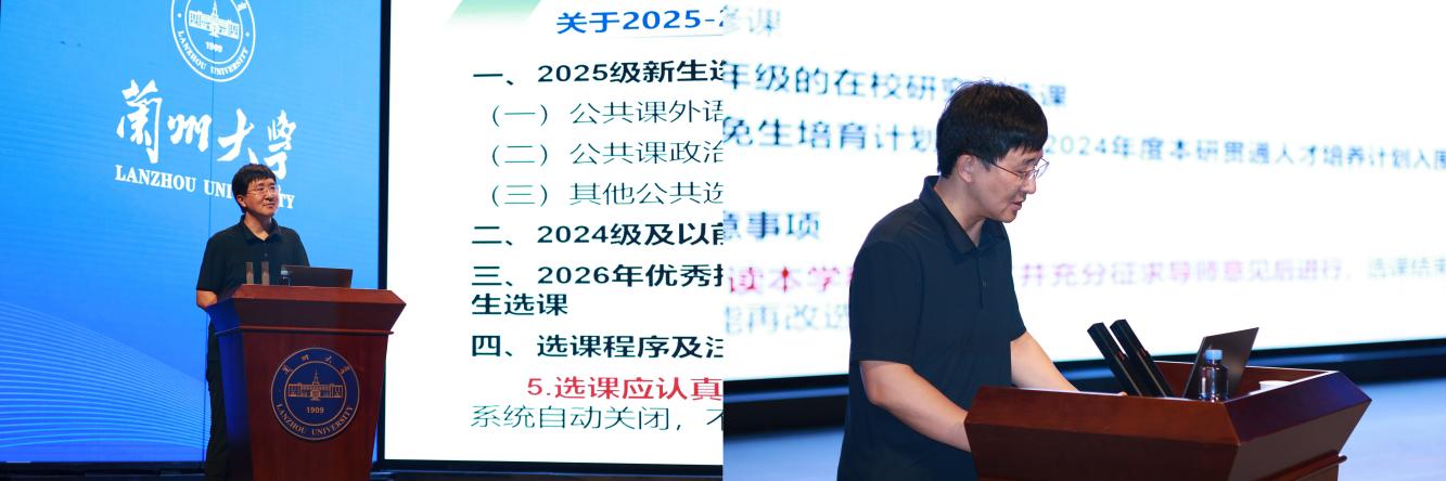 研究生院培养办公室副主任徐鹏就《兰州大学研究生培养相关政策》进行了解读,重点介绍了选课流程、学分要求、中期考核、学位申请等研究生学习阶段的关键环节。他强调,研究生应主动阅读培养方案,与导师充分沟通,科学规划学业。对于2025级新生,特别强调公共课外语、思政课及其他选修课的选课时间与注意事项,避免大家因操作失误影响学业进度。